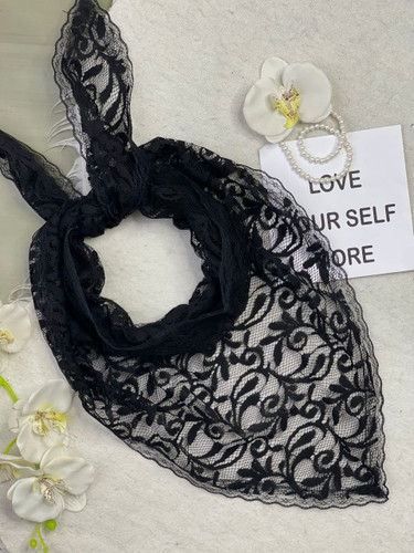 روسری سه گوش گیپور دانتل مشکی کد 1991