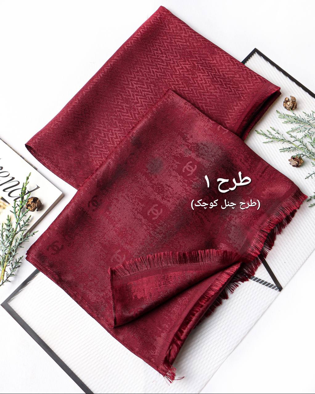 ناموجودشال ابریشم ژاکارد چری زرشکی دورو کد 1313