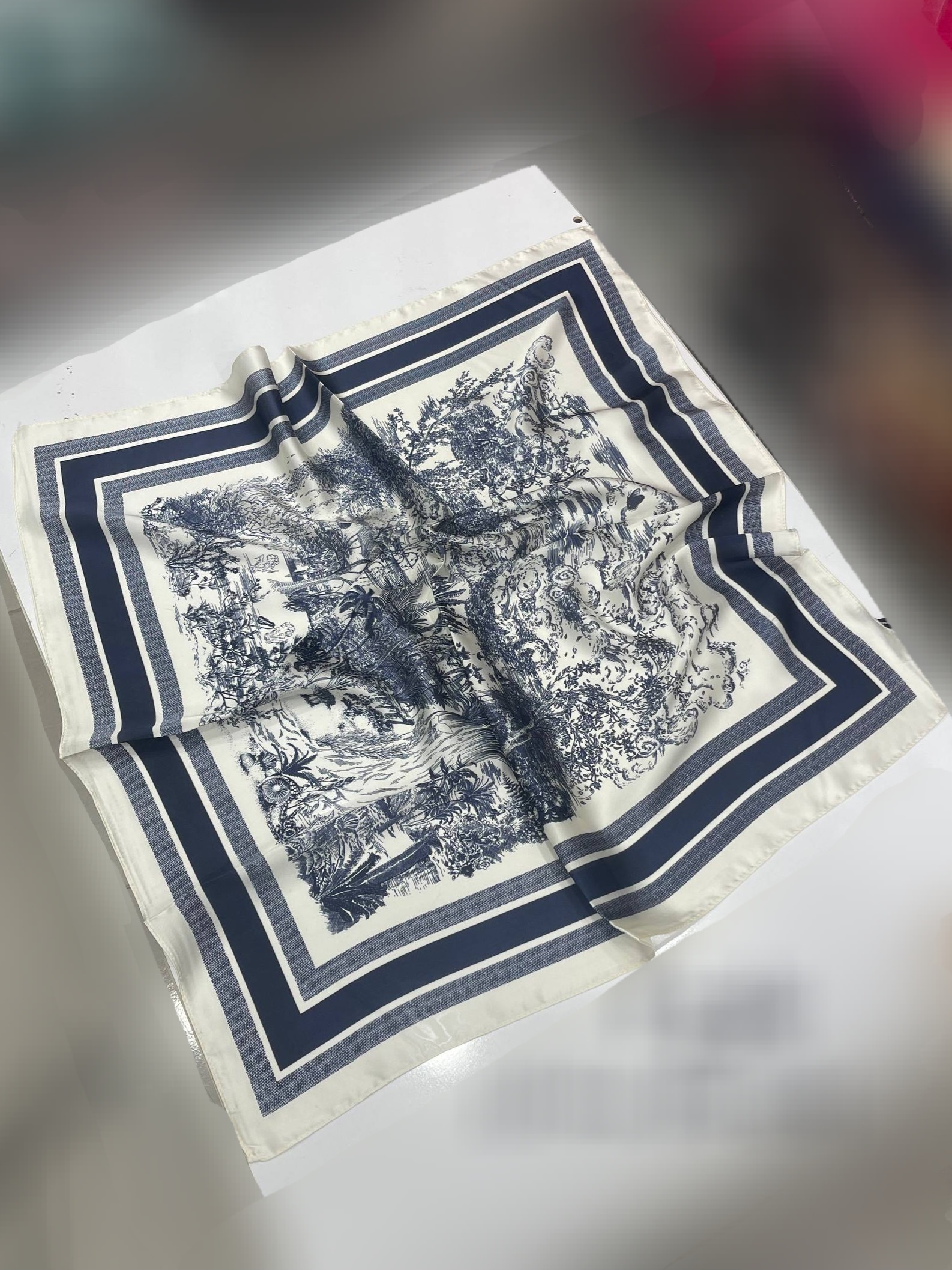 ناموجودمینی اسکارف ابریشم طرح جنگل وارداتی قواره ۷۵