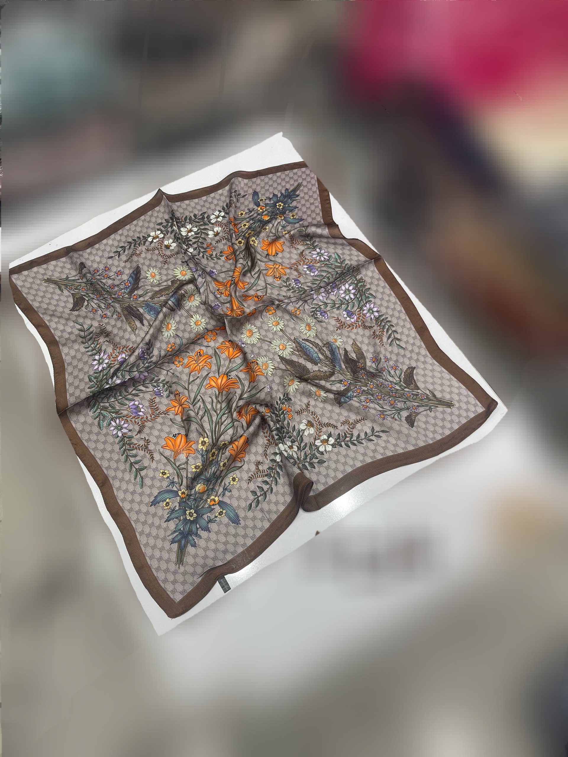 ناموجودمینی اسکارف ابریشم طرح گل وارداتی قواره ۷۵
